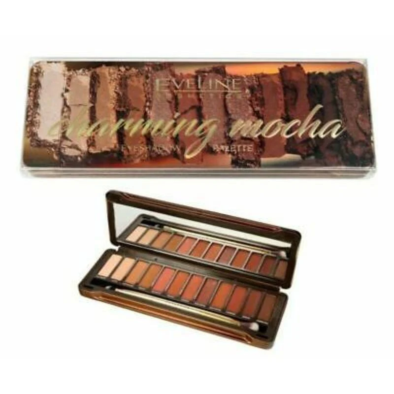 Eveline Cosmetics Eyeshadow Palette Charming Mocha é uma paleta com 12 sombras altamente pigmentadas e de elevada durabilidade, em tons de café. Cores selecionadas harmoniosamente.